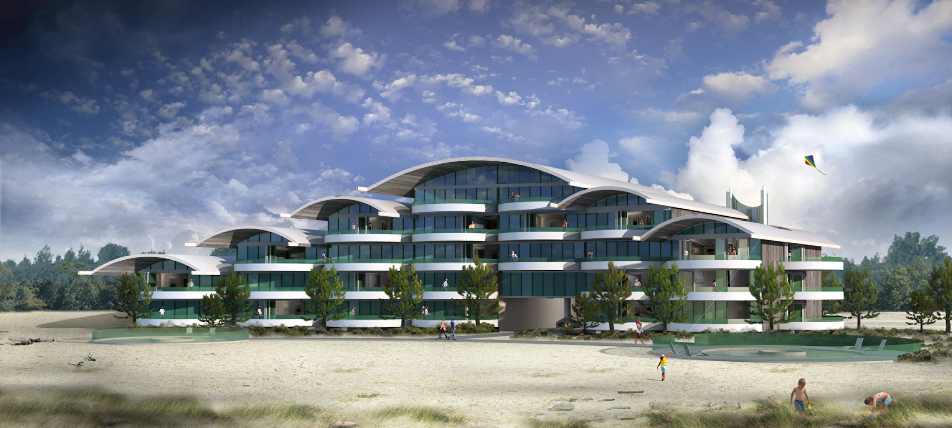 A 24-unit, 5-story multi-family oceanfront condominium project on a 12-acre site. Floor to ceiling glazing offers unobstructed views of the Pacific Ocean. Large, curved terraces extend the living areas to the exterior to experience the costal sights, sounds and scents.